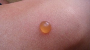 Only half the size of the one I got in 2002, but still quite unsightly with a diameter of 8mm. (Height makes it almost spherical.) There’s a tightness around the skin, probably from growth pulling on it for building material. Again it’s the result of what I used to think were flea bites, but the fact they’re restricted to me now makes me wonder if it’s not an allergy of some kind instead.